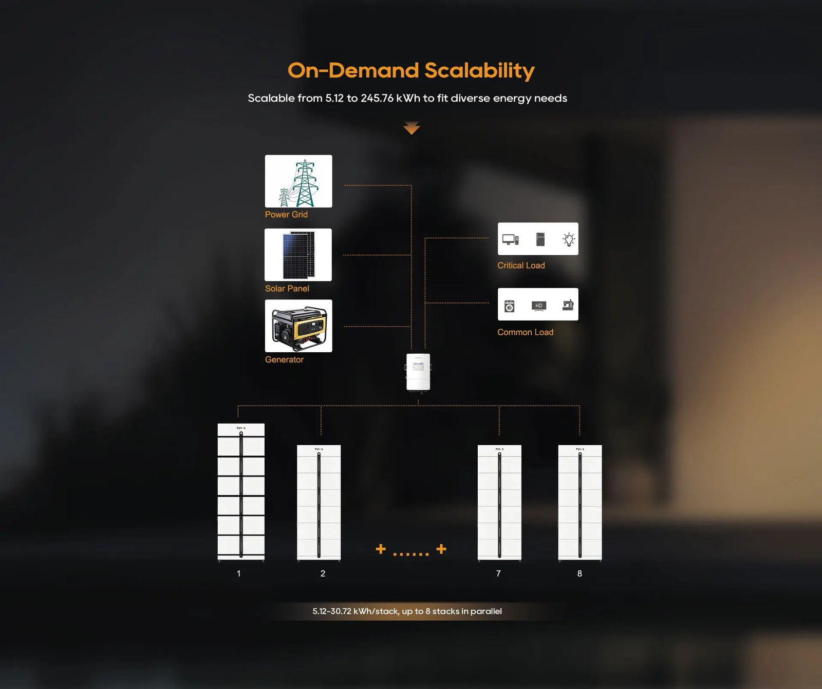 Capacité évolutive de 5,12 kWh à 30,72 kWh par stack