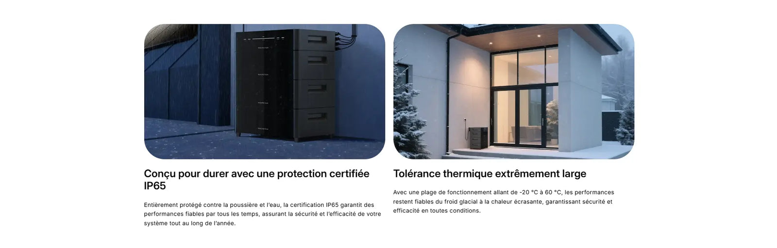 | Température de fonctionnement | Charge : -20°C ~ 60°C / Décharge : -30°C ~ 85°C |